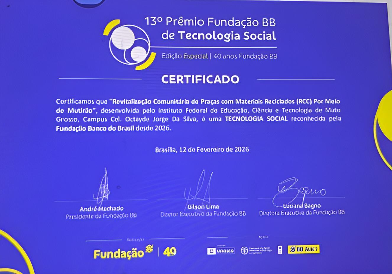O selo de qualidade concedido pela Fundação Banco do Brasil certifica o projeto como uma referência nacional em tecnologia social, ampliando sua visibilidade e fortalecendo sua contribuição para a formação acadêmica, a pesquisa e o desenvolvimento sustentável.